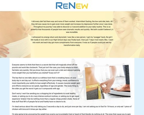 Most importantly ReNew will help you get rid of unwanted body fat and keep it off for good.