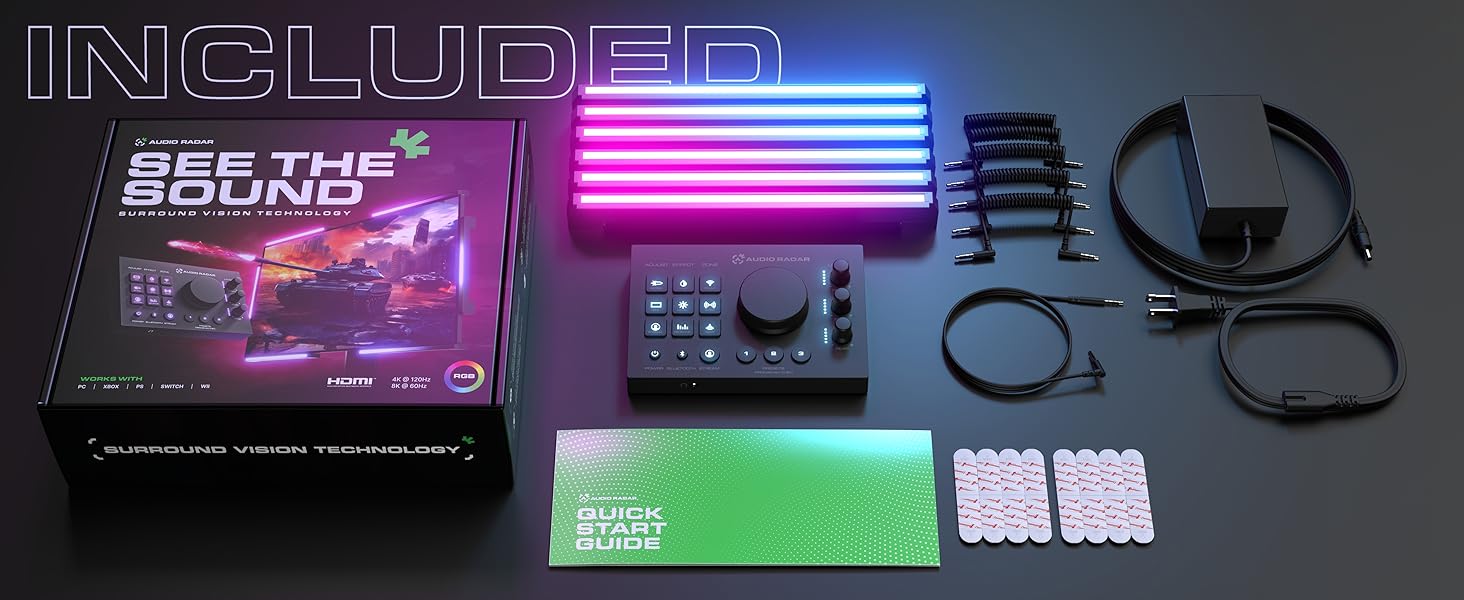 Audio Radar with Surround Vision Technology™, LED Sound Detection for PC/Xbox/PS5, FPS & Deaf Gamers, Works With Most Video Games, Fits 24-65” Gaming Monitor, TV, Works With Or w/o Gaming Headset