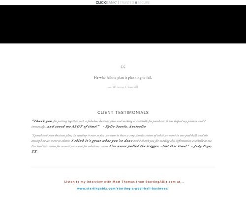 “I purchased your business plan, in reading it over so far, we seem to have a very similar vision of what we want in our pool halls and the atmosphere we want to obtain. I think it’s great what you’ve done and I thank you for making this information available to me. I’ve had this vision for several years and for whatever reason I’ve never pulled the trigger…Not this time!” – Jody Frye, TX